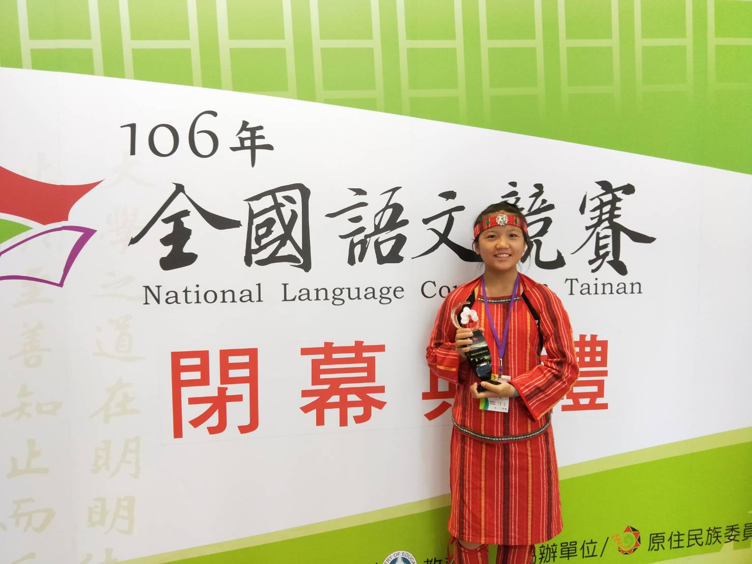 恭喜本校蔡依伶同學參加106年全國語文競賽,榮獲賽德克族語朗讀第一名。